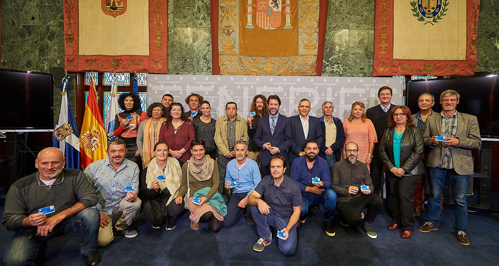 El presidente del Cabildo, Carlos Alonso, y el consejero de Empleo, Comercio, Industria y Desarrollo Económico, Efraín Medina, han hecho entrega hoy miércoles [día 22], del carné a 32 nuevos ...