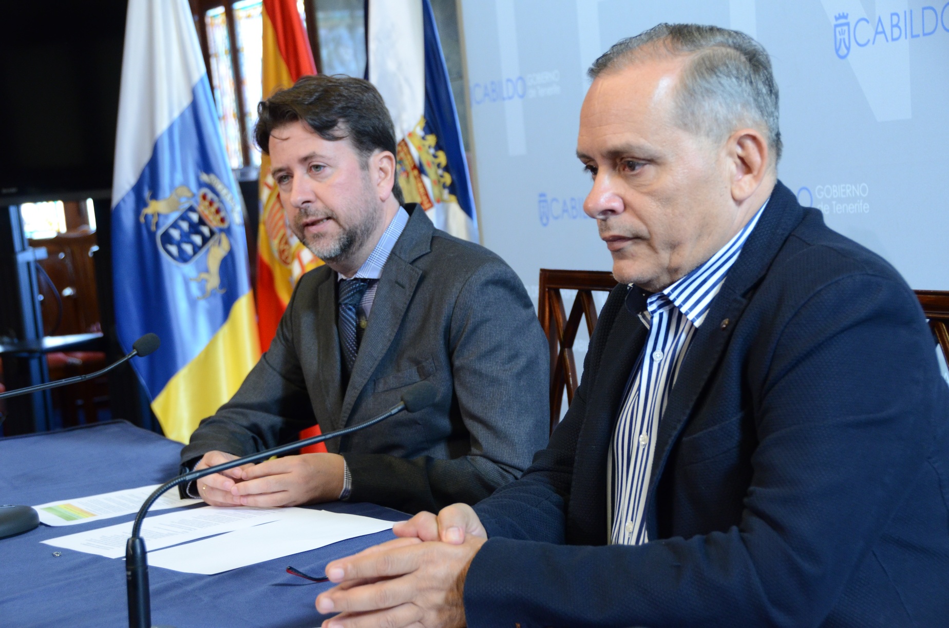El presidente del Cabildo Insular, Carlos Alonso, acompañado del vicepresidente de Desarrollo Económico, Efraín Medina, presentó hoy [lunes 14] en rueda de prensa el Plan Director Insular de Zonas...