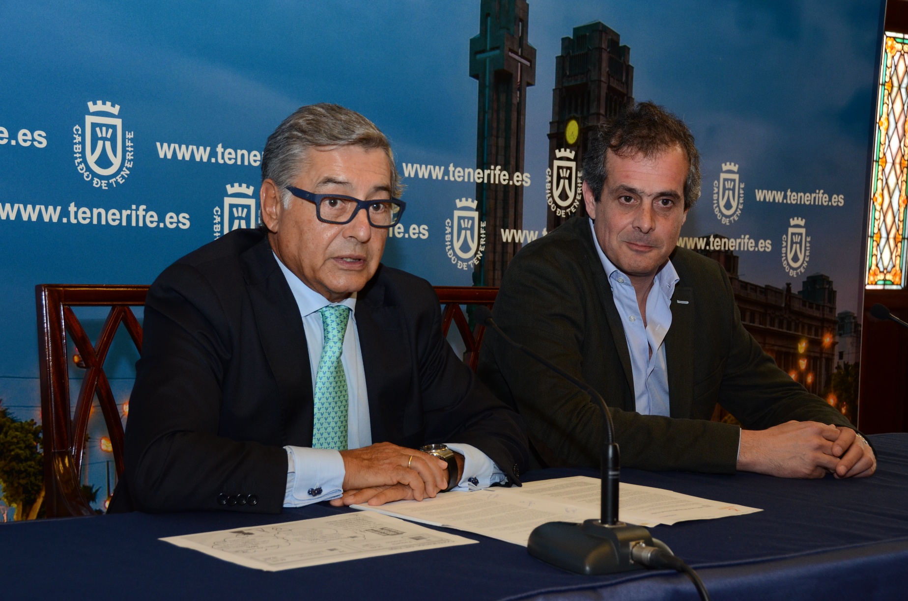El presidente del Cabildo, Carlos Alonso; el presidente de la Asociación Hotelera y Extrahotelera de Tenerife, La Palma, La Gomera y El Hierro (Ashotel), Jorge Marichal, y el viceconsejero de Turismo...