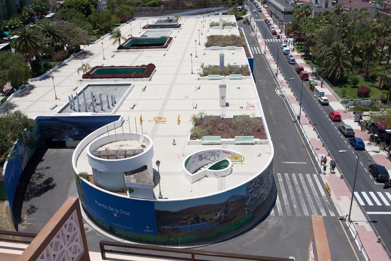 El Cabildo concluye la instalación de la lona que cubre la estación de guaguas del Puerto de la Cruz