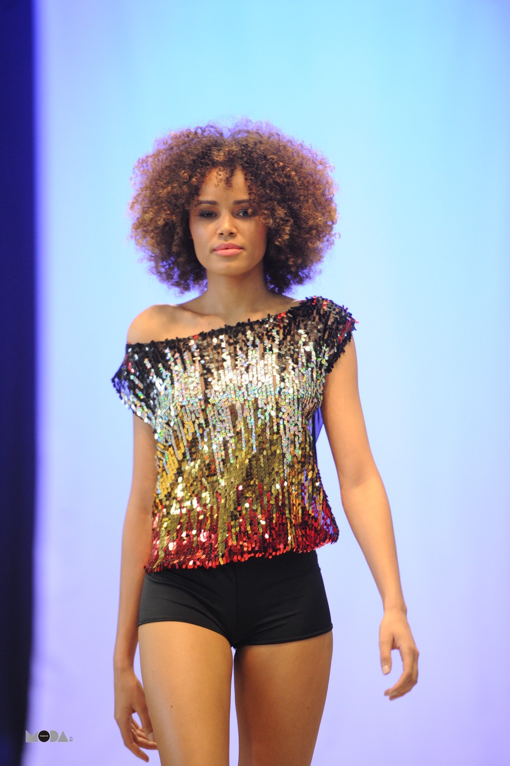 Más Q Puntas fue la siguiente, con colores brillantes que en su colección primavera verano, denominada ‘Sámbame’. Inspirada en el baile más popular de Río de Janeiro, la propuesta vino marcada por el brillo y la elegancia. Repleta de prendas llenas de fantasía, con predomino de los tejidos de fiestas y tules, donde las transparencias ocuparon un lugar muy destacado, la firma aportó piezas de lycra, entre las que destacaron aquellas sublimadas. Con su línea children dieron rienda suelta al colorido y la armonía con una propuesta floral.
