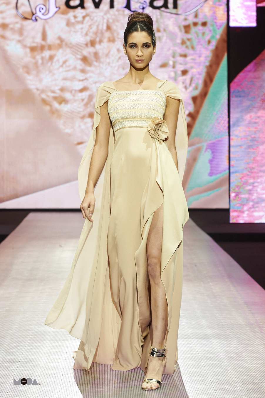 Después le tocó el turno a Anamaya Design, con su colección inspirada en la elegancia que evoca la pâtisserie y que se aprecia en los detalles de su confitería; y en la belleza de los colores mágicos y femeninos de sus dulces, la firma propone como resultado ‘Caramel’. Esta colección ofrece numerosos vestidos cortos, en la cual predominan los colores pastel y las faldas con volumen.  Los trajes ajustados, cobran protagonismo resaltando la silueta femenina.