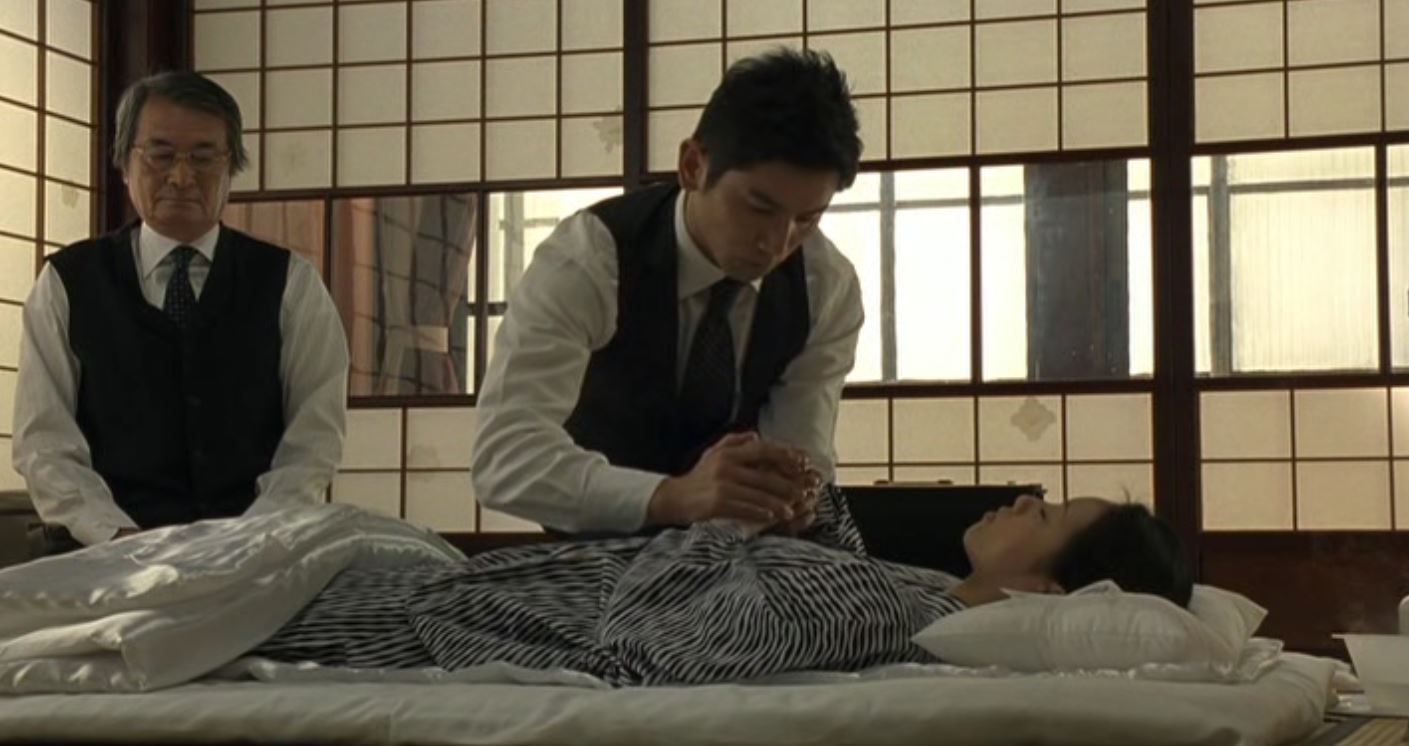 La película Despedidas (Okuribito), cuenta cómo Daigo Kobayashi, antiguo violoncelista de una orquesta que se acaba de disolver, acaba vagando por las calles sin trabajo y sin demasiada esperanza. Por ello, decide regresar a su ciudad natal en compañía de su esposa. Allí consigue un empleo como enterrador: limpia los cuerpos, los coloca en su ataúd y los envía al otro mundo de la mejor forma posible. Aunque su esposa y sus vecinos contemplan con desagrado este puesto, Daigo descubrirá en este ritual de muerte la chispa vital que le faltaba a su propia vida.