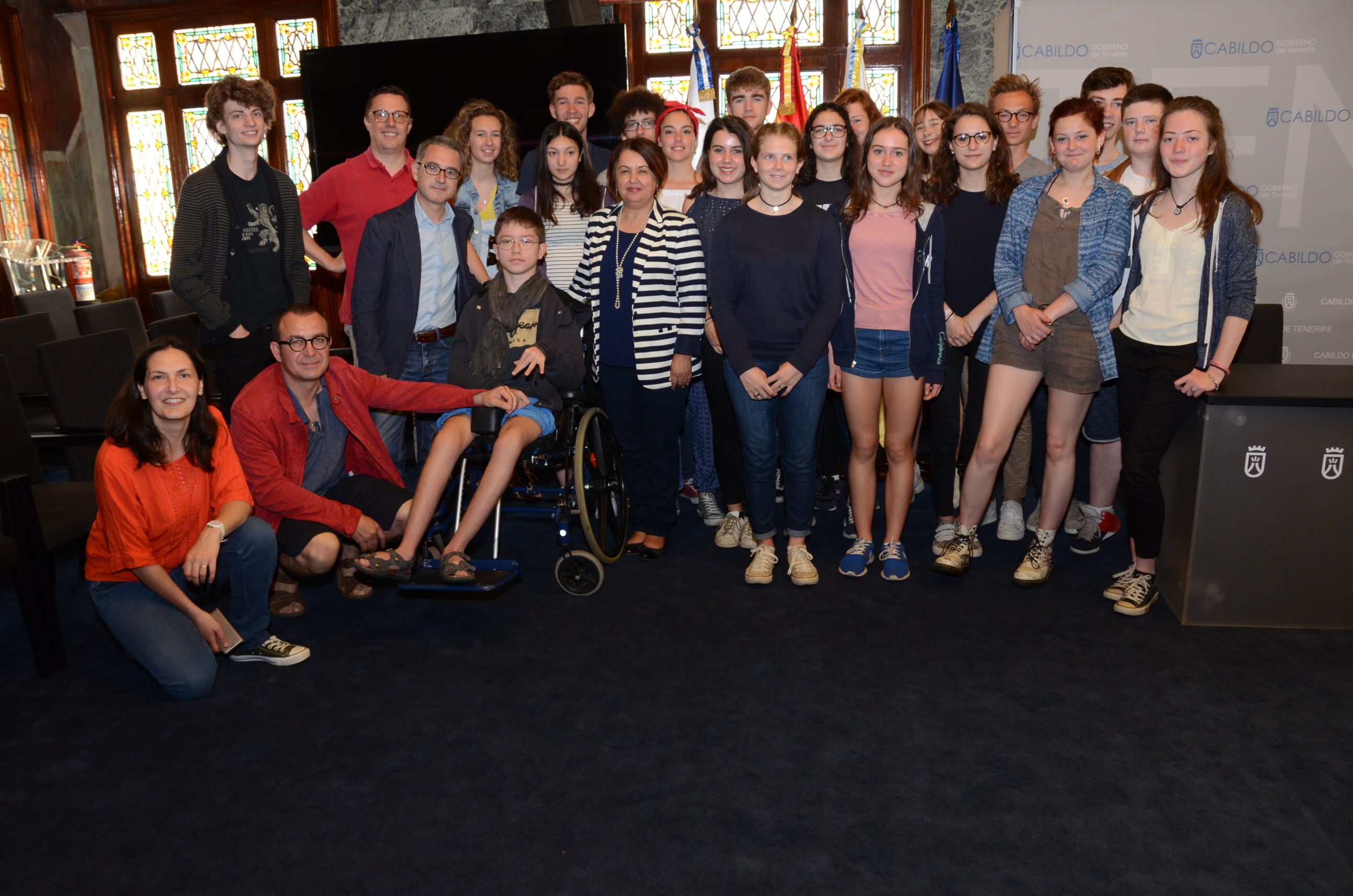 La consejera insular de Juventud, Josefa Mesa, ha recibido hoy [viernes 28] en el Salón Noble del Cabildo a un grupo de 20 estudiantes franceses de 1º de Bachillerato que se encuentran en Tenerife...