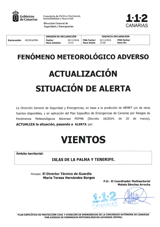 El Cabildo de Tenerife, ante la situación de alerta por viento declarada por la Dirección General de Seguridad y Emergencias del Gobierno de Canarias prevista a partir de las 22:00 horas de hoy...