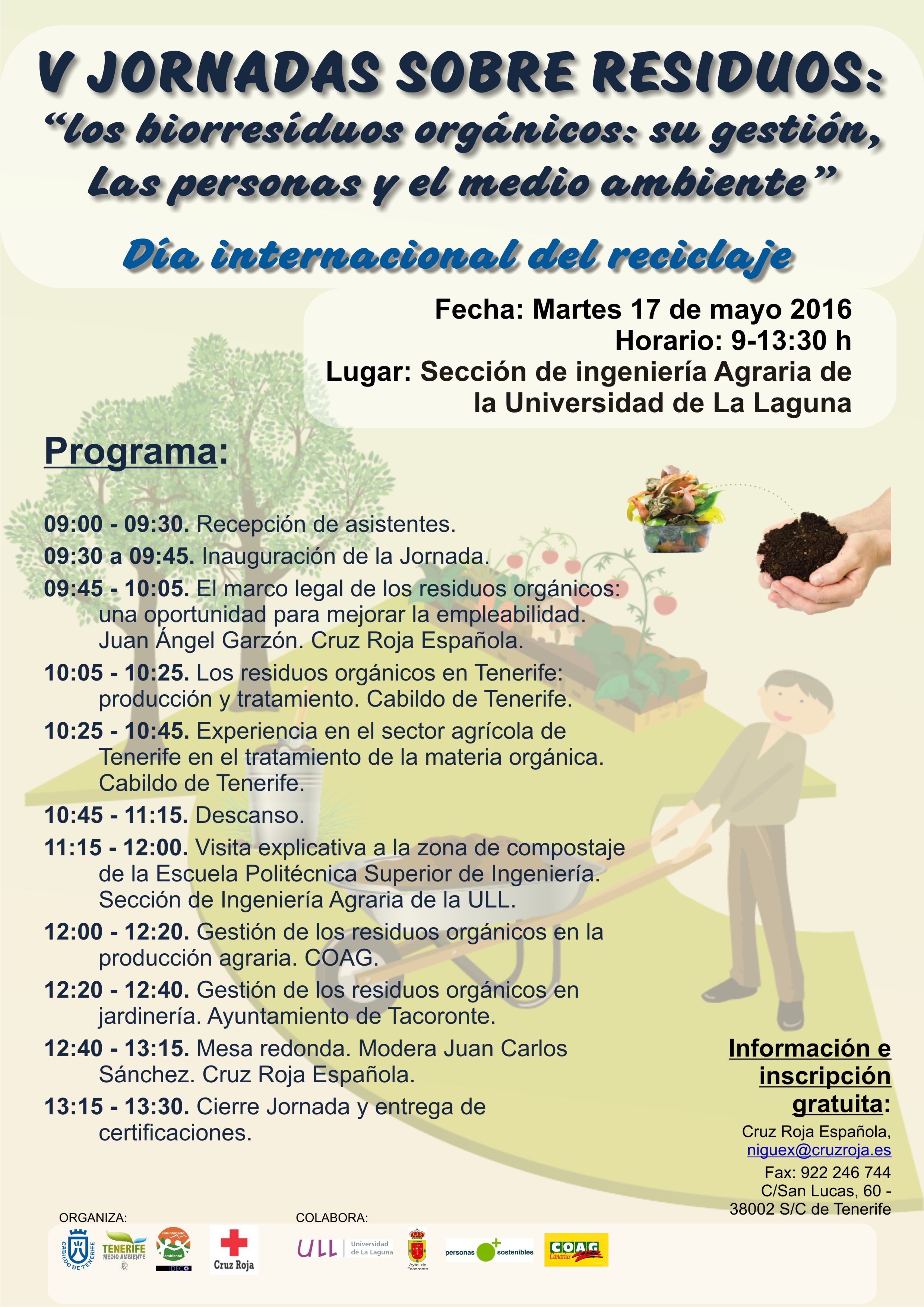 El Cabildo de Tenerife, a través de la Oficina de la Participación y el Voluntariado Ambientales, y Cruz Roja Española organizan las V Jornadas sobre Residuos denominadas Los biorresiduos...