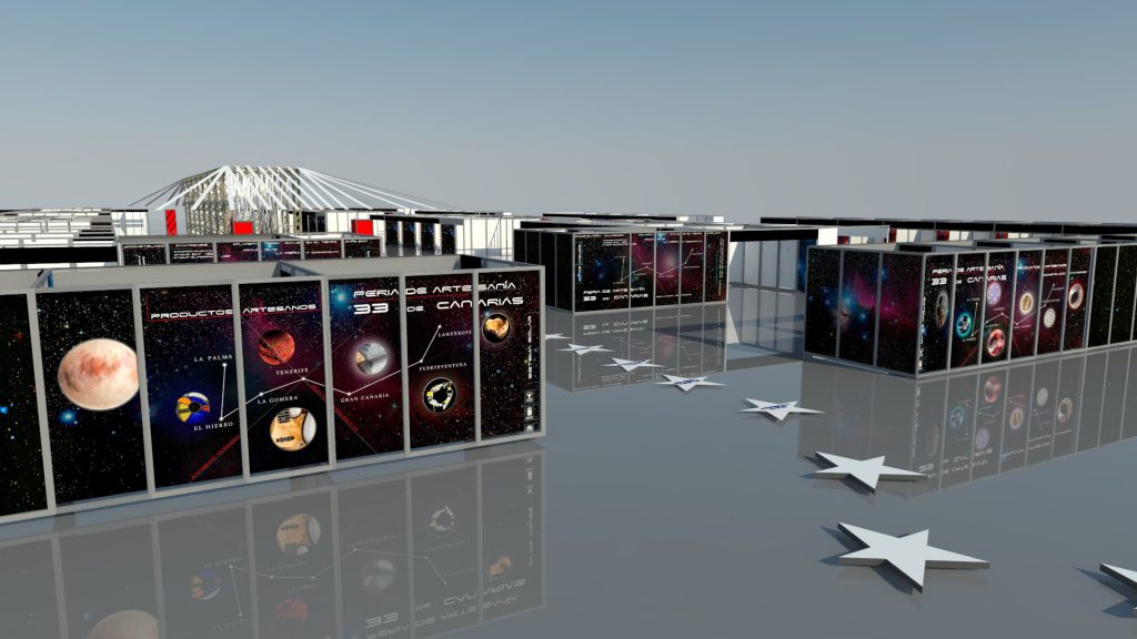 El montaje y decorado, en esta edición, está inspirado en un viaje a través del universo, a través de las artesanías de las islas. Un escenario estelar para acoger el mayor encuentro de artesanos de las islas, que se dan cita en un único espacio.