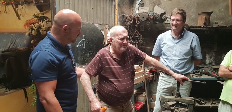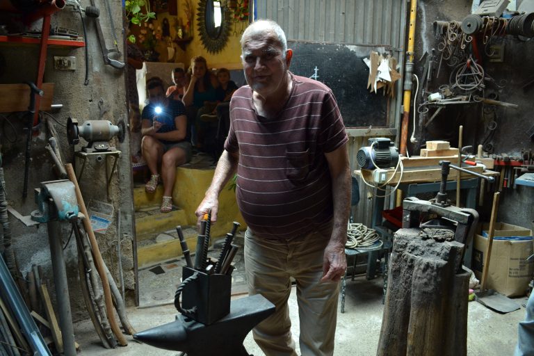 Sus sabias palabras, vivencias y anécdotas son historia viva de nuestras tradiciones. Cuenta el artesano, cómo le quitaban de las manos los utensilios de labranza que realizaba en su pequeña herrería, situada en el barrio de San Antonio. Sus azadas se “intentaron imitar y no pudieron”. Era tanta la demanda de ellas, además de  machetes, cuchillos y piezas forjadas en hierro que le solicitaban los agricultores de la zona noroeste de la isla que casi no tenía tiempo de realizar todos los pedidos.