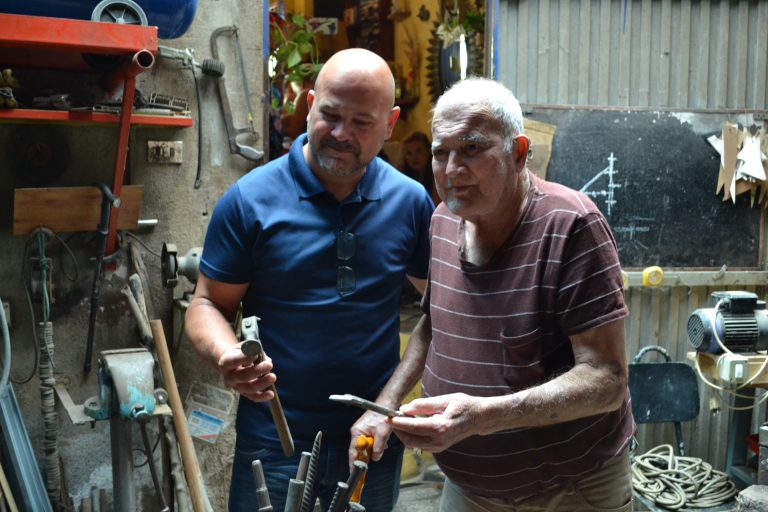 Ambos, padre e hijo, viven profundamente y con pasión el oficio, que es y ha sido su forma de vida. La dificultad y dureza de la fragua, llevan a crear e inventar artilugios de lo más curiosos y únicos para facilitar la labor en la herrería.