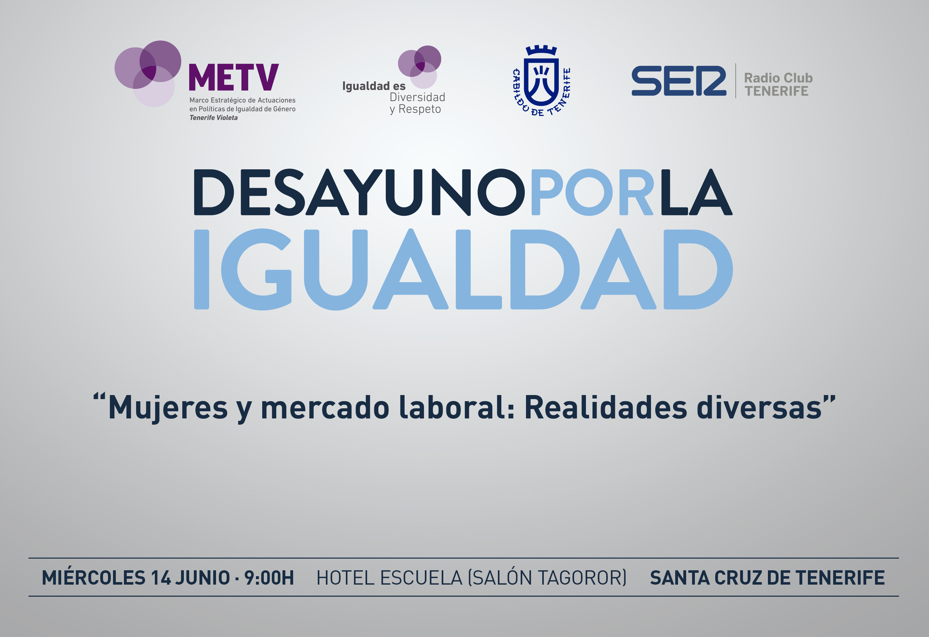 El miércoles 14 de junio a las 9 horas, tendrá lugar en el Hotel Escuela de Santa Cruz de Tenerife el Desayuno por la Igualdad dentro de la campaña Mujeres y mercado laboral: realidades...