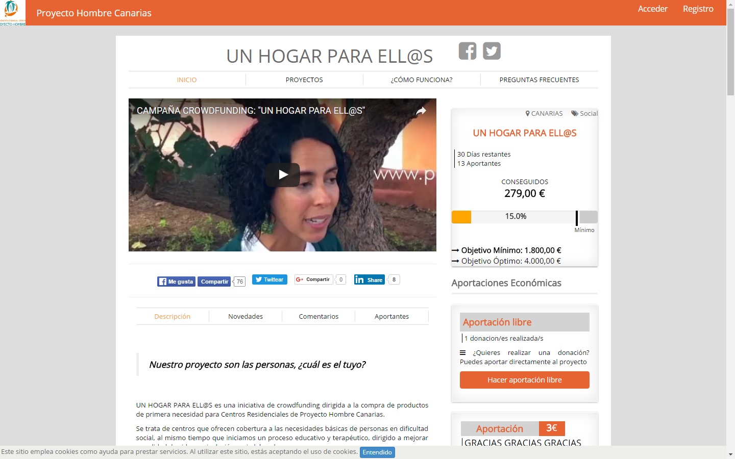 El Cabildo Insular, a través del programa Tenerife Solidario, apoya a la Fundación Proyecto Hombre en su campaña de crowdfunding (captación de fondos) Un hogar para ell@s dirigida a la compra de...