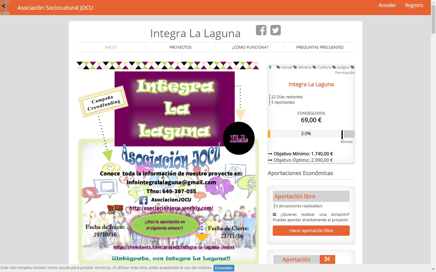 El Cabildo Insular, a través del programa Tenerife Solidario, apoya a la Asociación Sociocultural Jocu en su campaña de crowdfunding (captación de fondos) dirigida a la puesta en marcha de un...