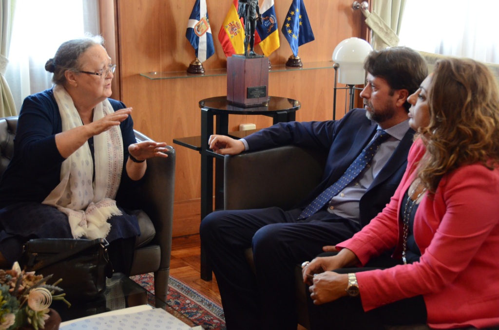 El presidente del Cabildo, Carlos Alonso, y la consejera de Acción Social, Cristina Valido, recibieron hoy [viernes 4] en el Palacio Insular a Anna Ferrer, presidenta de la Fundación Vicente Ferrer,...