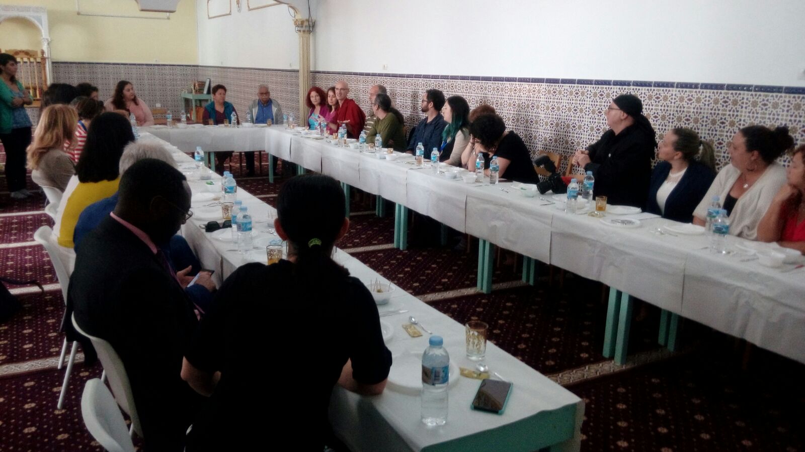 En El Fraile, conocieron las acciones que se han llevado a cabo en este barrio de Arona, qué supuso la llegada de Juntos en la misma dirección y la configuración del grupo de participación ciudadana. Los representantes europeos hicieron un recorrido por el barrio y visitaron la mezquita donde tomaron un desayuno, preparado por la comunidad. En esta visita se interesaron por el rezo interreligioso que, desde 2013, se celebra en la plaza de El Fraile –el último fue el pasado 3 de febrero- y que logra congregar a una decena de comunidades religiosas y a personas no adscritas a ninguna creencia. Todas se unen en un rezo común para pedir por el respeto, la paz y la convivencia y es un ejemplo simbólico de que el entendimiento y la colaboración entre confesiones distintas es posible y, además, beneficioso para el desarrollo y el crecimiento comunitario en territorios con un grado importante de diversidad cultural como Tenerife.