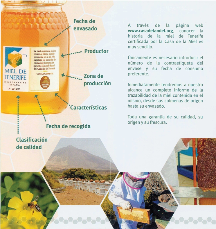 La D.O.P. "Miel de Tenerife", garantiza la trazabilidad de las mieles certificadas por la misma, y por tanto registra todo el recorrido de la miel desde su origen en las colmenas, hasta el envase en que se pone a disposición de los consumidores.
