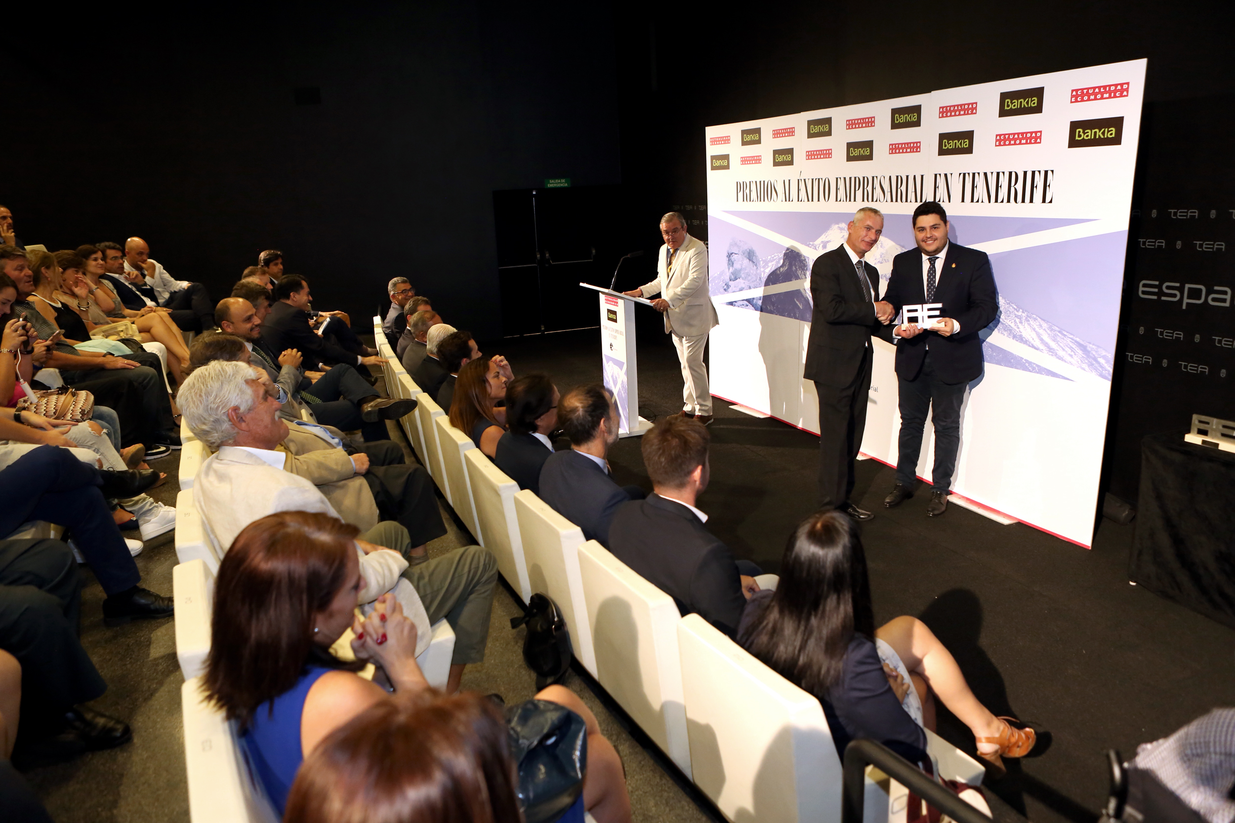 El acto de entrega de los Premios al Éxito Empresarial de Tenerife tuvo lugar en las instalaciones de TEA Tenerife Espacio de las Artes, y contó con la asistencia del vicepresidente socioeconómico del Cabildo, Efraín Medina; el consejero de Empleo, Leopoldo Benjumea; el director insular de Movilidad y Fomento, Miguel Becerra; la gerente de Fifede, Gabriela de Armas; el gerente de la Fundación General de la Universidad de La Laguna, Julio Brito; el director de Cáritas Diocesana de Tenerife, Leonardo Ruiz del Castillo; la coordinadora provincial de Cruz Roja Española, Elena Marco; y el director territorial en Canarias de la Fundación Proyecto Don Bosco, Miguel Ángel Rojas.
