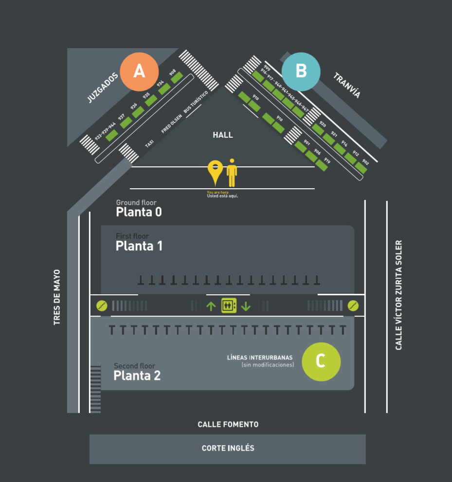 La ejecución de estos trabajos hacen necesario que, desde este próximo sábado [día 16], TITSA, empresa del Cabildo, tenga que trasladar la parada de las guaguas urbanas al exterior del intercambiador que quedará ubicada en la Avenida Víctor Zurita Soler, en la zona que rodea el hall frente al edificio de Justicia y en la calle Antonio Perera Reyes, frente al tranvía. Los trabajos no afectarán a las líneas interurbanas de la compañía que seguirán operando con normalidad en la planta 2 del Intercambiador.