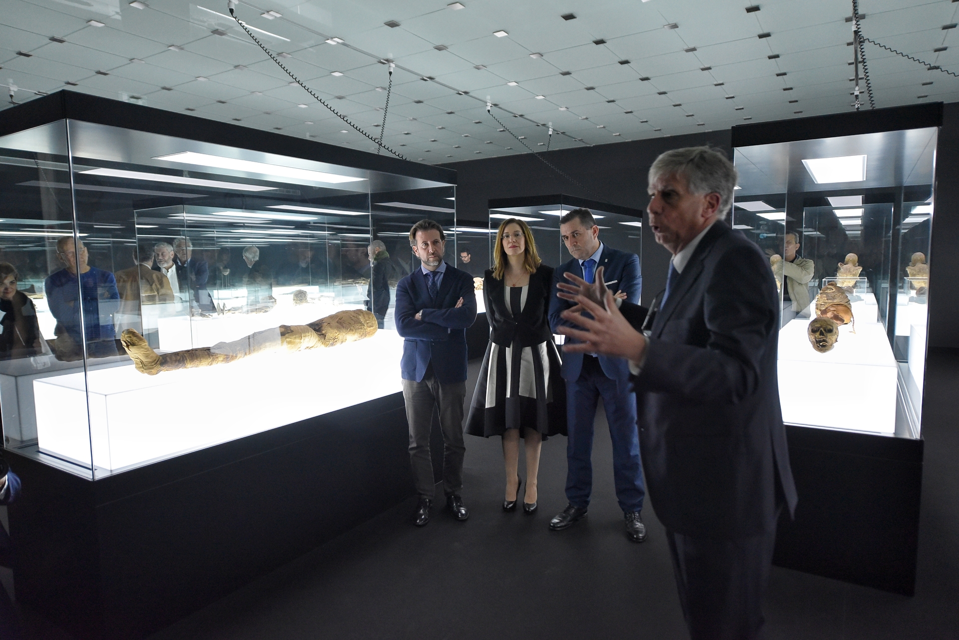 Por su parte, la consejera de Museos, Amaya Conde, afirmó en su intervención que “esta exposición nos habla del pasado pero también del presente, de que la relación con la muerte es una constante en el ser humano de todos los tiempos. Hemos aunado criterios científicos, históricos y filosóficos con una inmersión personal y emocional en los diferentes ámbitos con los que cuenta”. “Es un camino –añade- que se inicia con las referencias a los congresos de momias anteriores, para después empezar con la muestra propiamente dicha, que se desarrollará con un prólogo emocional antes de acceder al santuario”. “La simbología, los colores, las luces y las formas, nos ayudan a sentir la exposición, además de verla de forma consciente”, concluyó.