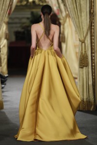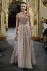Etérea da nombre a la nueva propuesta de Sedomir Rodríguez de la Sierra, en la que tul, gasa, mikados y plumas construyen vestidos híperfemeninos. Los trajes se llenan de encajes con sensuales transparencias, sinuosos escotes, amplias aberturas hasta el muslo y cinturas ajustadas por ínfimos cinturones, en una propuesta inspirada en el cielo y en la que destacan las siluetas en terciopelo para la noche, que se entremezclan con delicados bordados con formas vegetales. En cuanto a la paleta cromática, el diseñador aboga por el blanco impoluto, pasando por el gris, los tonos maquillaje, el negro o el mostaza.