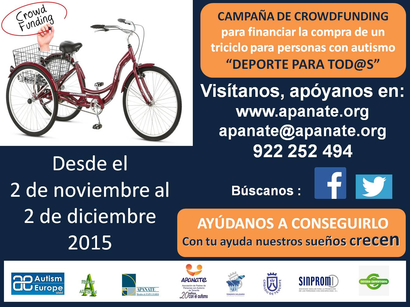 El Cabildo, a través del programa Tenerife Solidario, apoya la Asociación de Padres de Personas con Autismo de Tenerife (Apanate) en su campaña de crowdfunding (captación de fondos a través de...