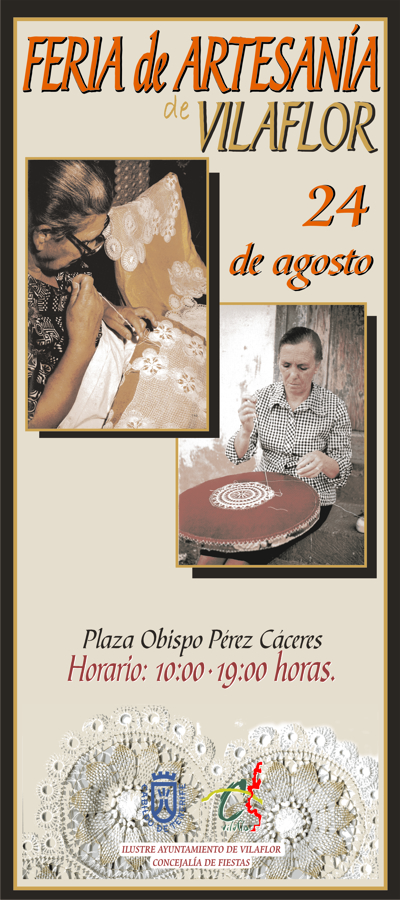 El próximo día 24 de agosto tendrá lugar en la Plaza Obispo Pérez Cáceres de la localidad de Vilaflor su Feria de Artesanía. Horario de 10.00 a 19.00 horas.