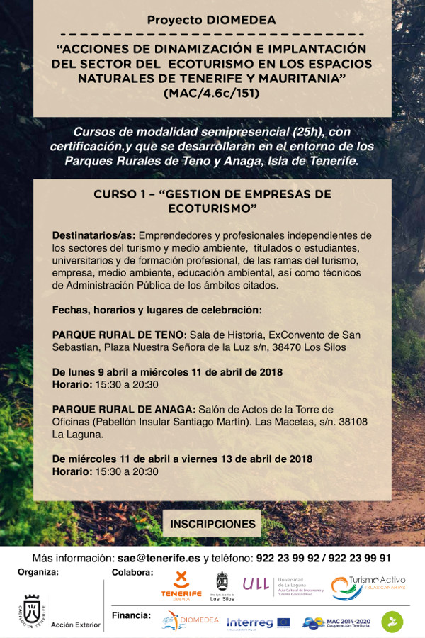 Curso: Gestión de Empresas de Ecoturismo El Cabildo Insular de Tenerife, a través del Servicio Administrativo de Acción Exterior, ofrece esta acción formativa semipresencial de carácter...