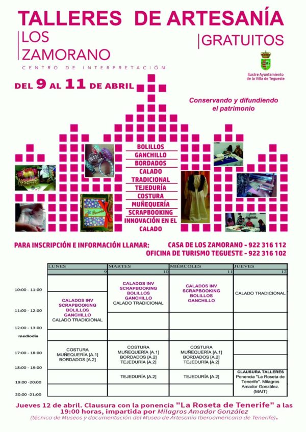 Talleres de Artesanía Gratuitos en la Casa de Los Zamorano La Casa Los Zamorano de Tegueste ha abierto el plazo de inscripción para unos talleres de artesanía que impartirá de forma gratuita...